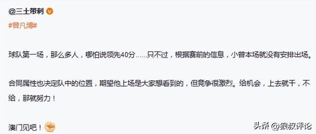 球队第一场,那么多人,哪怕说领先40分......只不过,根据赛前的信息,小曾本场就没有安排出场。
